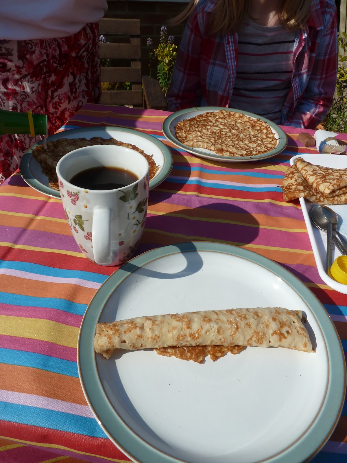 It was my birthday on Sunday and that was jam-packed with "stuff". Good stuff. The twins turned 9 and so, as tradition dictates, I presented myself on their doorstep at dawn. Well, 8.30. On Sunday. On my birthday. Their birthday. So, after the first cup of coffee slid down my throat, and I woke up properly, we had a pancake breakfast outside on the patio. In the sun.